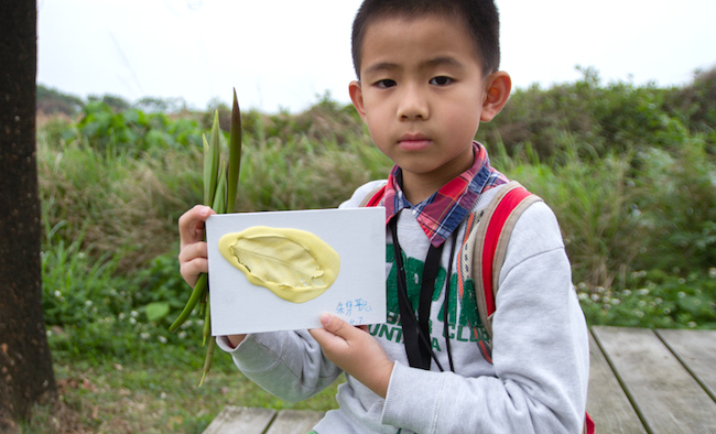 树蛙说,在保护区我们不能带走任何东西,除了照片和树叶的印记,这是我制作的自然礼物。