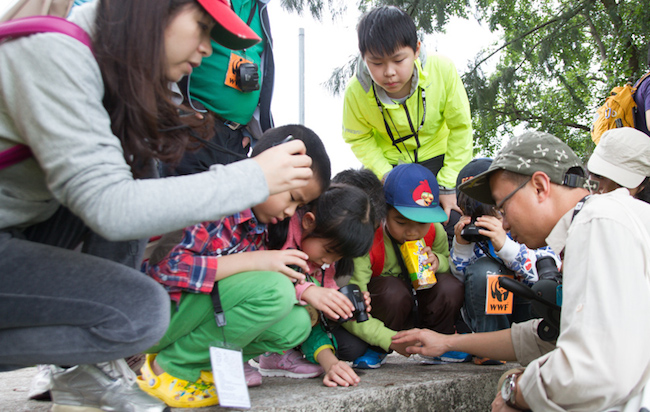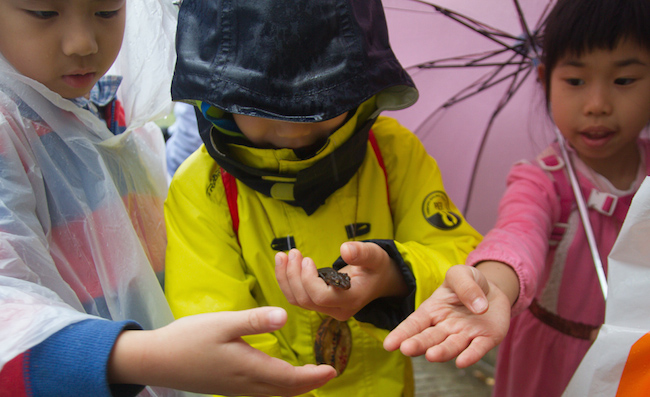 树蛙小心翼翼地请它爬上手里,让小朋友们轻轻触摸,感受它湿润的皮肤。小朋友们第一次与蝾螈亲密接触都欢喜不已,这种可以用皮肤呼吸的两栖爬虫让大家爱不释手,久久不愿离开。