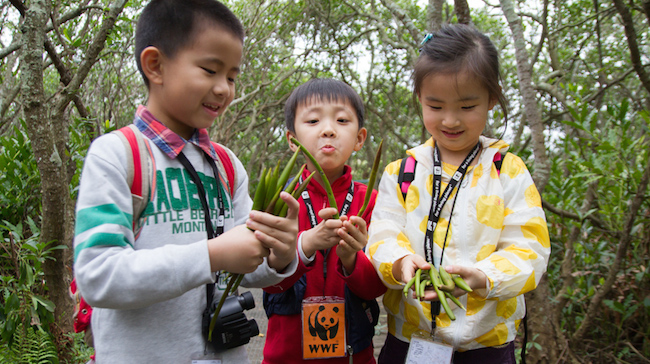 在自然中,快乐总是来得那么容易。大家捡起红树林中掉落的秋茄果实,看谁可以仍得更远,看谁可以把种子立起来……