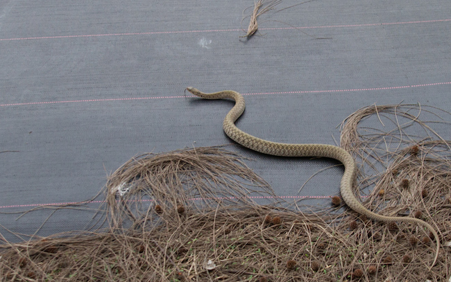 大自然又一次给我们以惊喜,一只水蛇出现,和大家打了一个招呼就匆忙钻进水里,悄然离去。