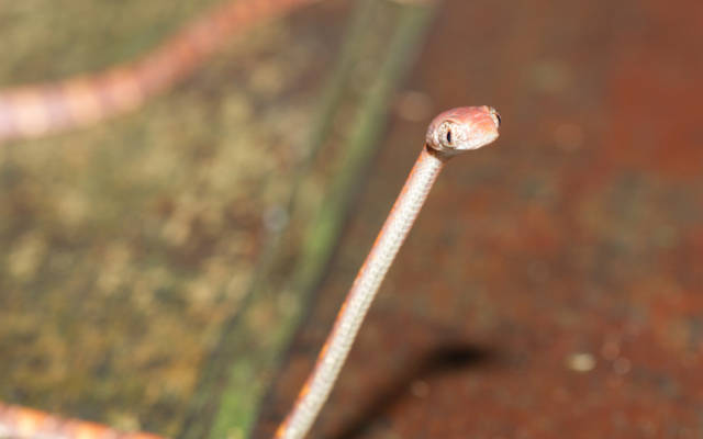 这条过树蛇安静地穿梭在森林里的木栈道上,当它抬头的瞬间,萌呆的样子,让我一下子不再害怕它了。